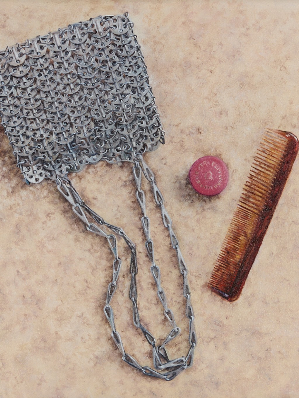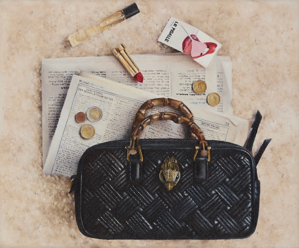 Desde os detalhes do desfile da Dior, a etiqueta desenhada de um casaco da Prada até os objetos mais comuns — e muito estéticos que ela leva na bolsa, a pintora retrata o seu dia a dia com harmonia.